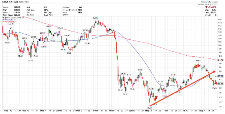 The KBW Bank Index (BKX) fell -2.1% for the week and has lost all the recent upward momentum. It may take some time for the regionals to rebound. Watch to see if it can hold recent support around $77. For a sustainable rally we would like to see the index recapture its 50-day moving average.