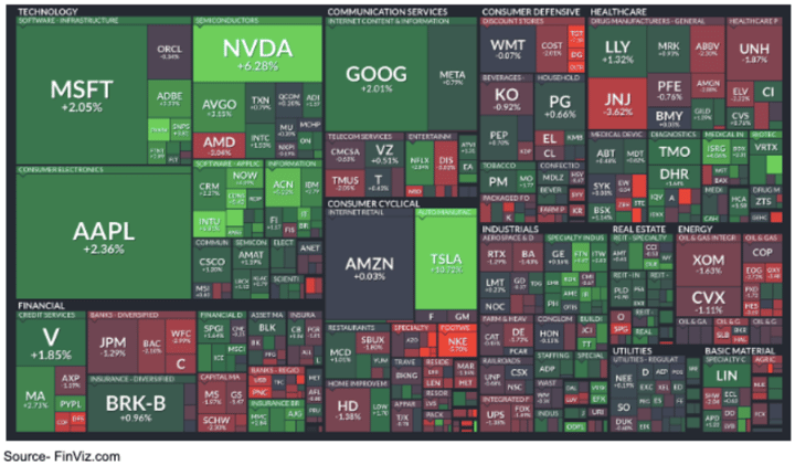 Their quarterly revenue doubled year-over-year to $13.5 billion. Their earnings per share of $2.02 is 800% higher than last year. The stock traded as high as $520 after hours. That peak of its rally equated to a 250% YTD gain. The stock alone is responsible for 16.4% of the gain in the S&P 500.