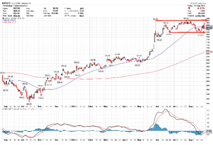 Technically, the stock has only closed above $900 twice and struggled to make a sustainable move above this level. The MACD is showing potential signs of a bullish crossover, while price action failed to recapture the 50-day moving average. While the neutral range of $812 to $900 is very wide, news could break it out of this range when they report after the close on Thursday.