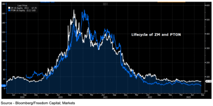 Shares of two of the hottest stocks during the Covid pandemic in Zoom (ZM) and Peloton (PTON) reported last week. Their results were quite different, but their long term charts remain too similar. ZM remains -89.7 below its all-time highs. While PTON is even worse. Shares are -97% from their pandemic peak.