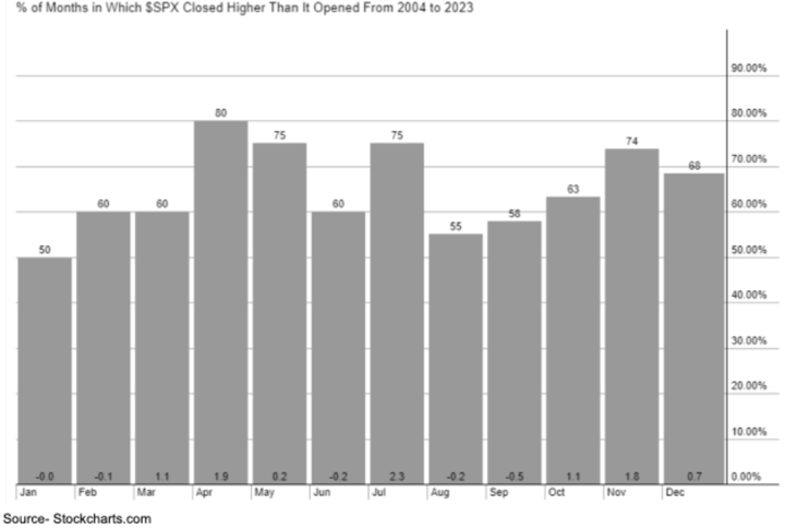 Sadly September doesn't get any better. As seen in the graph above, it’s the worst performing month over the last 20 years with an average loss of -0.5%