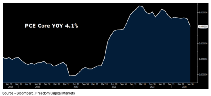 The Fed prefers this inflationary measure more than the CPI because it covers a broader range of spending. The core PCE previous reading of y-o-y 4.1% was its lowest reading since September 2021. This month economists are expecting a slight tick higher to 4.2%.
