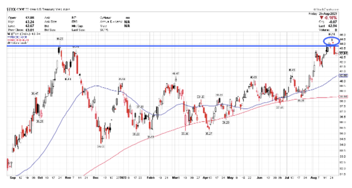 Was last week’s trip above 4.3% a fake out or a break out? The bulls are hoping it was a false move and that a counter move down is in the cards.