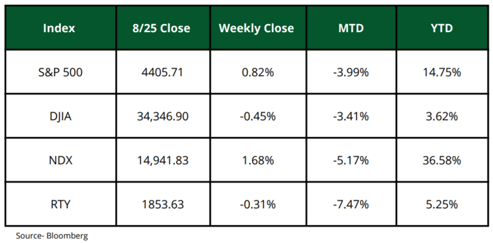 The week was truly about two things - Nvidia and Fed Chair Jerome Powell’s speech at Jackson Hole. Both of those events caused intraday volatility in the markets, but when the week came to an end if you didn't know about the news and intraday swings, it just seemed like a boring week on Wall St.