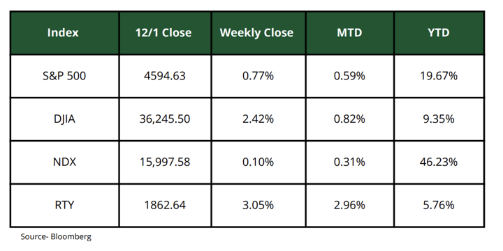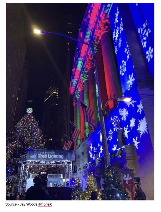 The party continued on Wall Street last week. Not only did we celebrate New York City’s oldest tree lighting tradition as we lit the NYSE tree for the 100th time (fun fact - Rockefeller Center celebrated only its 91st lighting), the indexes kept their weekly winning streaks going as well.