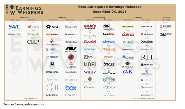 PCE. The Fed’s preferred inflation metric matched analysts expectations. October’s core numbers rose 0.2% and 3.5% from a year ago. The inline numbers continue the slow downward inflationary trend which helps fuel the argument that a hike in interest rates is no longer on the table. In fact, the probability of a rate cut is growing more and more.