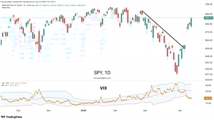 The Vix is often a great check on the S&P 500. This powerful rally has resulted in the vix closing below its bollinger band. A rare signal typically associated with at least some market pause.