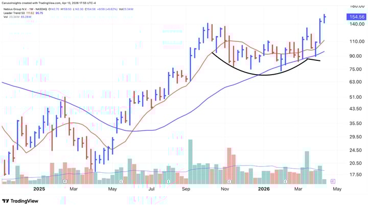 NBIS has broken out of a six month cup with handle pattern and is trading at all time highs.