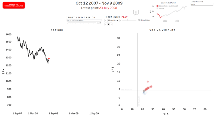 - Click the button in section 7 to for an analysis of the correlation between VRS and VIX for each of the relevant periods