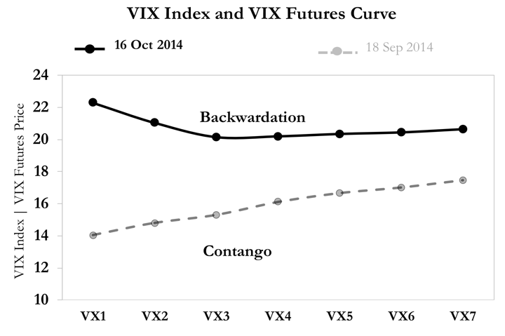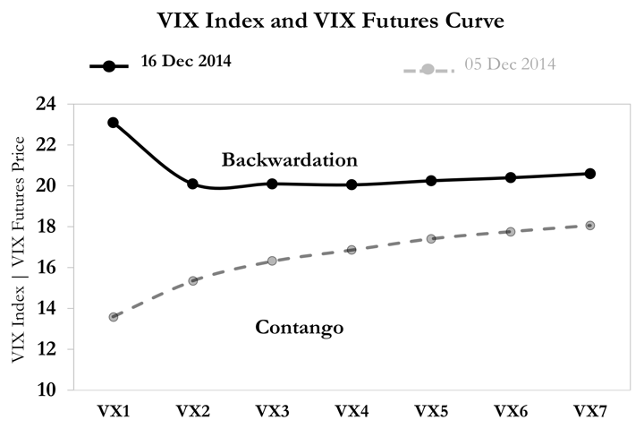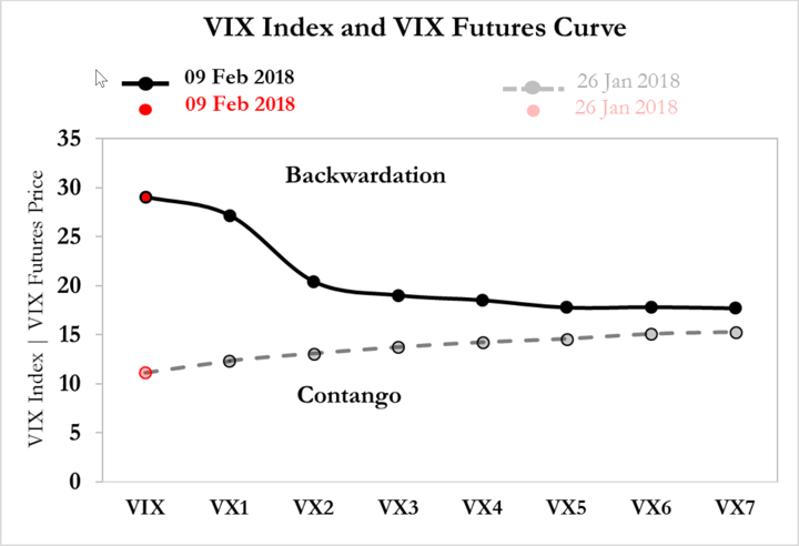 Problems do arise when the VIX spikes and the term structure moves to backwardation prior to expiry. This could result in heavy losses if the short sales are not covered in time. The most notable example, described by McMillan, resulted in the closing of XIV in early February 2018. XIV was an ETF created by investment bank Credit Suisse and constructed from short sales of near term VIX futures. The same author notes that two other ETFs of a similar nature were restructured following this event.