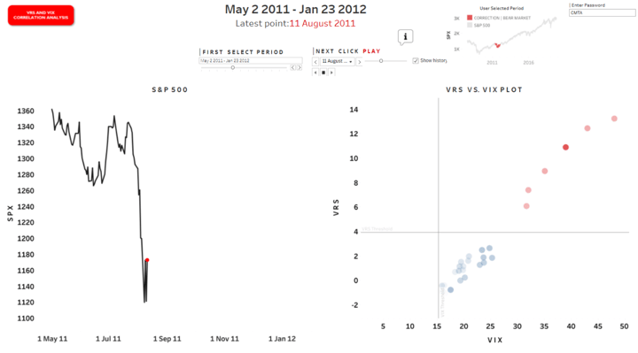 Figure 4.1: Snapshot of tool showing S&P 500 and VIX vs VRS plot on Aug 11, 2011