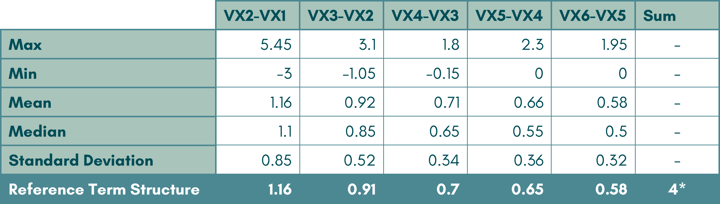 VIX futures Inter-month Spread Summary Statistics and Reference Term Structure