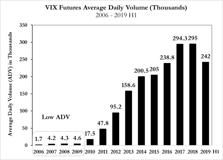 Figure 3.1: VIX futures Average Daily Volume 2006-2019 H1