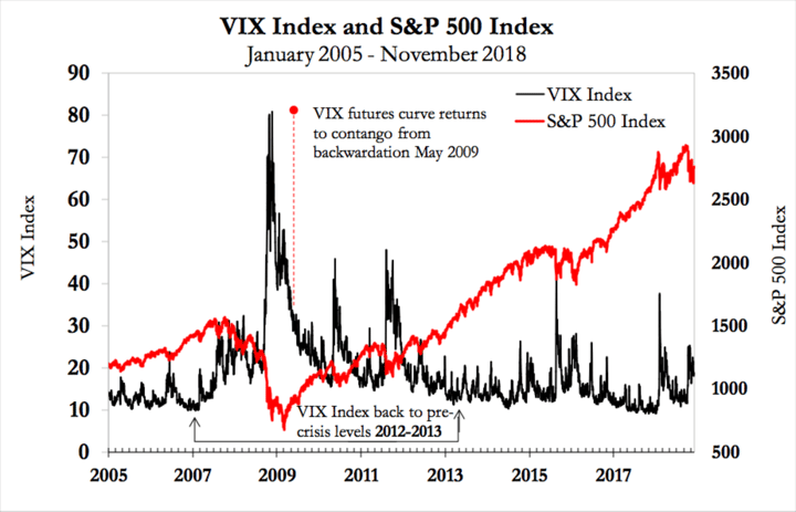 Figure 1.2: VIX and S&P 500 Index over the period January 2005 – November 2018