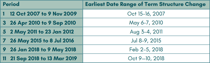 Having established the reference term structure and divided this study into six rally and six correction periods of S&P 500 exceeding 10 percent, we can now proceed to describe the application of this tool to three specific instances. They are: