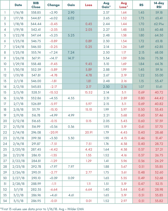 Appendix 1: Subset sample RSI Calculation for Biogen (BIIB)
