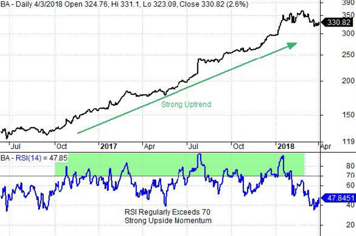 Chart 4: BA - RSI Strong Momentum (above 70)
