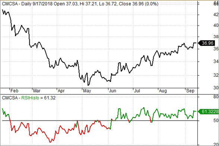 Chart 1 shows Comcast (CMCSA) and 14-day RSI to illustrate a shift in RSI and price direction. Comcast moved lower from late February to early May and RSI remained below 50 for the most part (red). A shift occurred in early June as prices moved higher and RSI crossed above 50. Prices moved higher from early June to September and RSI remained largely above 50 (green).