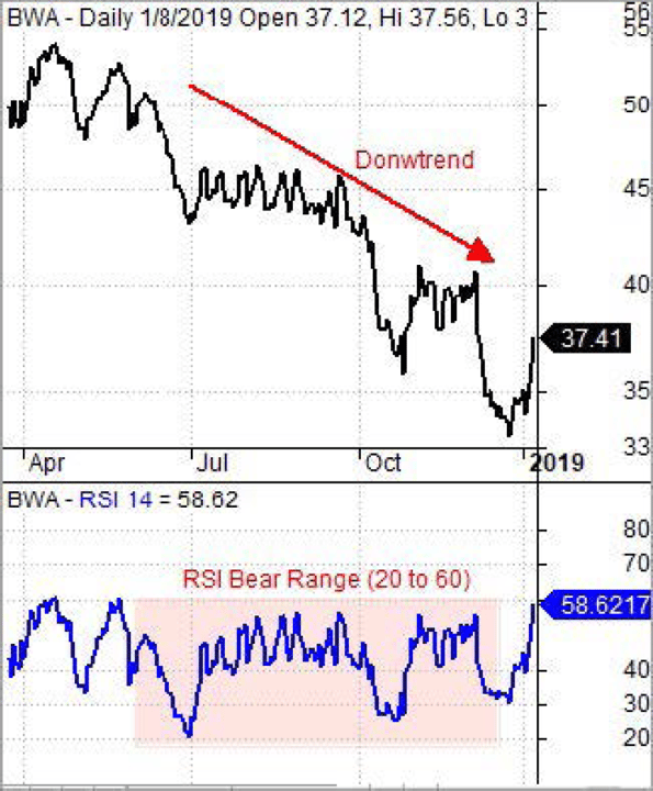 Chart 3: BWA - RSI Bear Range (20 to 60)