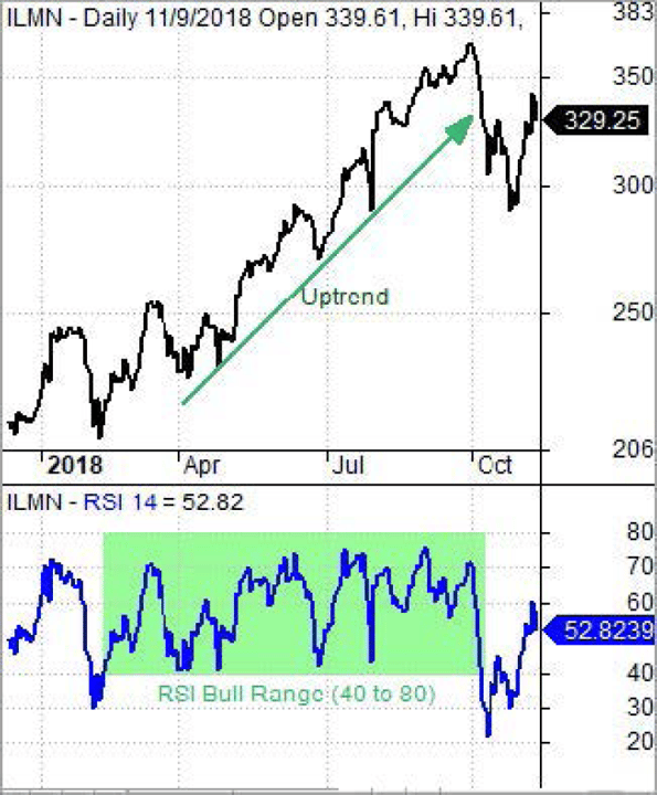 Chart 2: ILMN - RSI Bull Range (40 to 80)