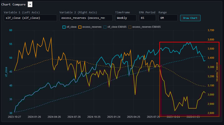 From this page today, I found some interesting themes besides just commodities. First and foremost is the Behavior of the XLF.