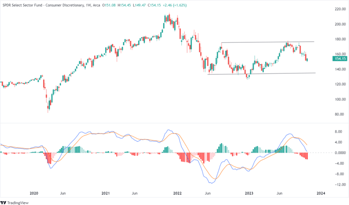 - When they are less confident, they spend less on non-essential discretionary and more on staples. It is important to remember that consumption is around 70% of GDP. For economic or macro analysis, I prefer to use monthly perspective charts.