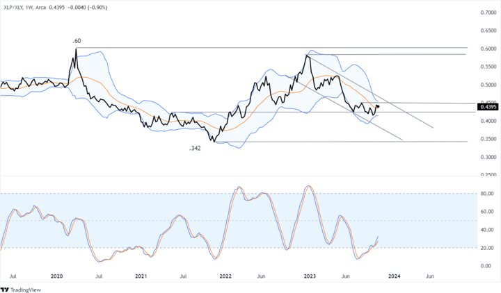 Consumer Discretionary (XLY) / Consumer Staples (XLP):