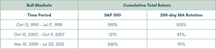 Table 4: S&P 500 vs. S&P 500 200-day Moving Average Rotation (Selected Bull Markets)