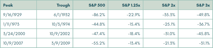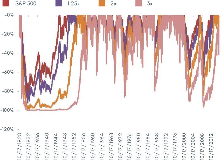 Chart 7: S&P 500 vs. Leveraged S&P 500 - Drawdown