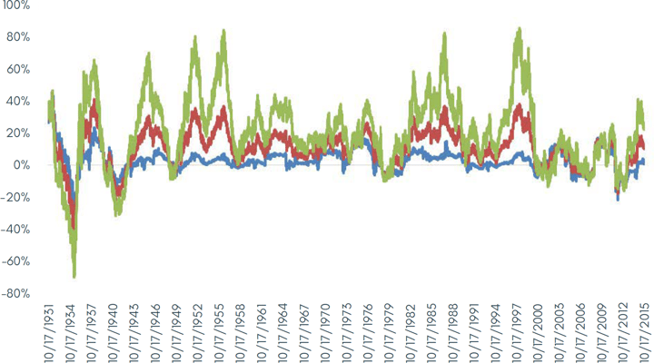 Chart 3: S&P 500 Annualized Return Above/Below Moving Averages (October 1928 - October 2015)