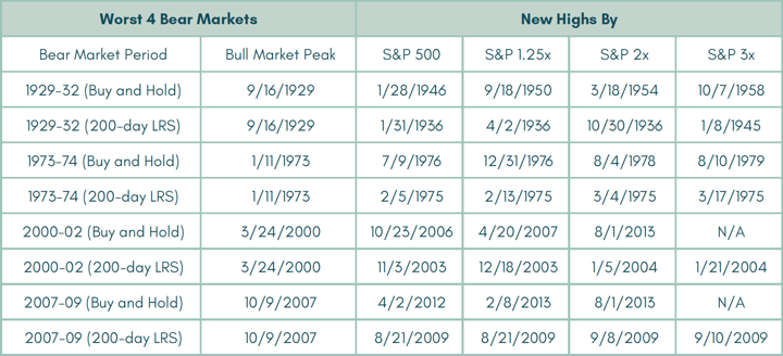 Table 10: Bear Markets and New High Dates, S&P 500 vs. LRS