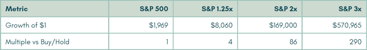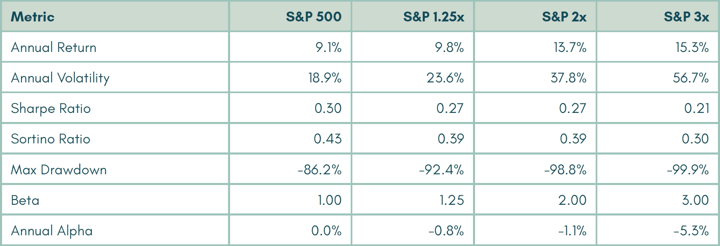 Table 1: S&P 500 vs. Daily Leveraged S&P 500, Growth of $1 (October 1928 – October 2015)