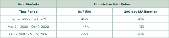 Table 5: S&P 500 vs. S&P 500 200-day Moving Average Rotation (Selected Bear Markets)