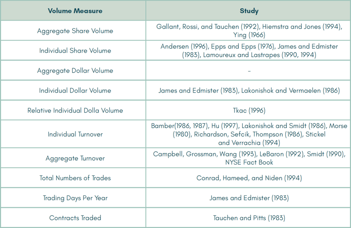 Appendix A: Volume measures presented by Lo and Wang, 2001.